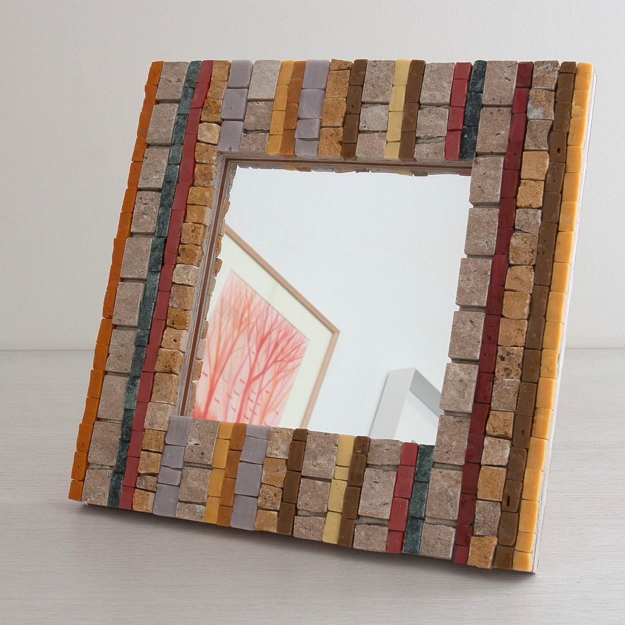 Specchio con cornice a Lines, collezione Betulle e Pesci Volanti di Gabriele Casale 2018, dimensioni 34x34 cm