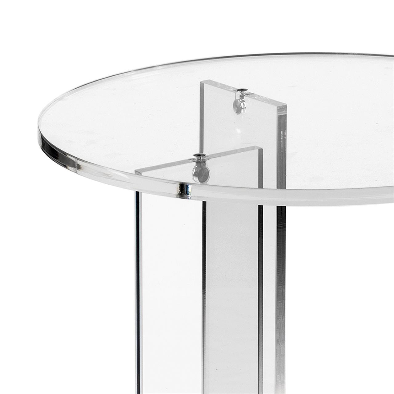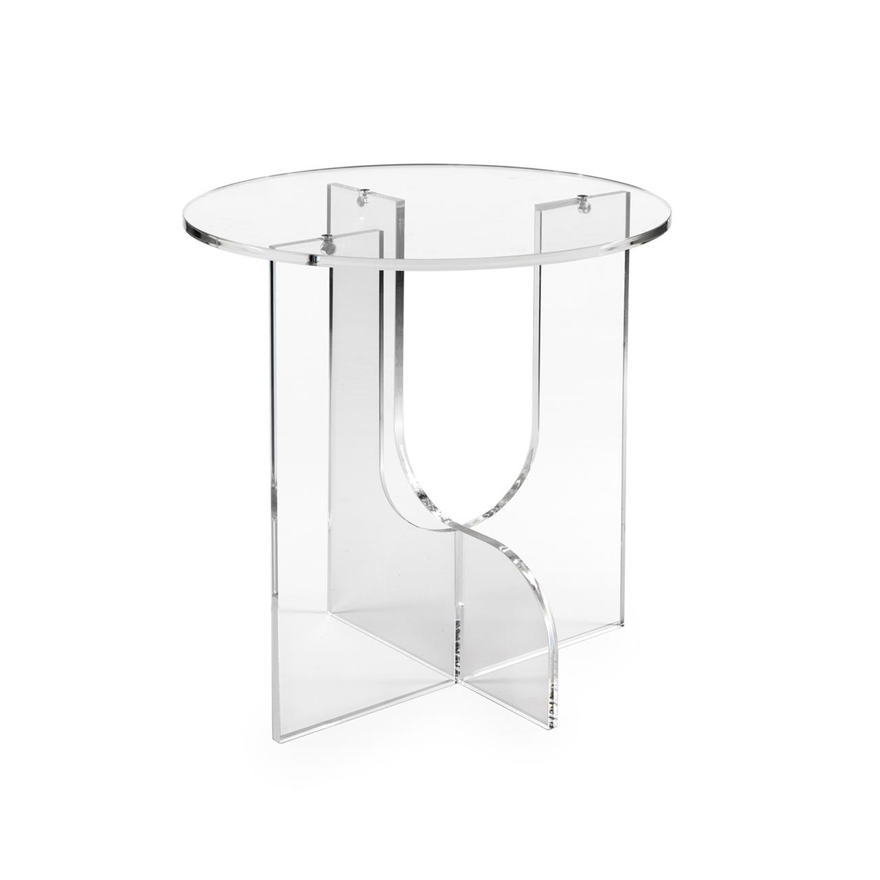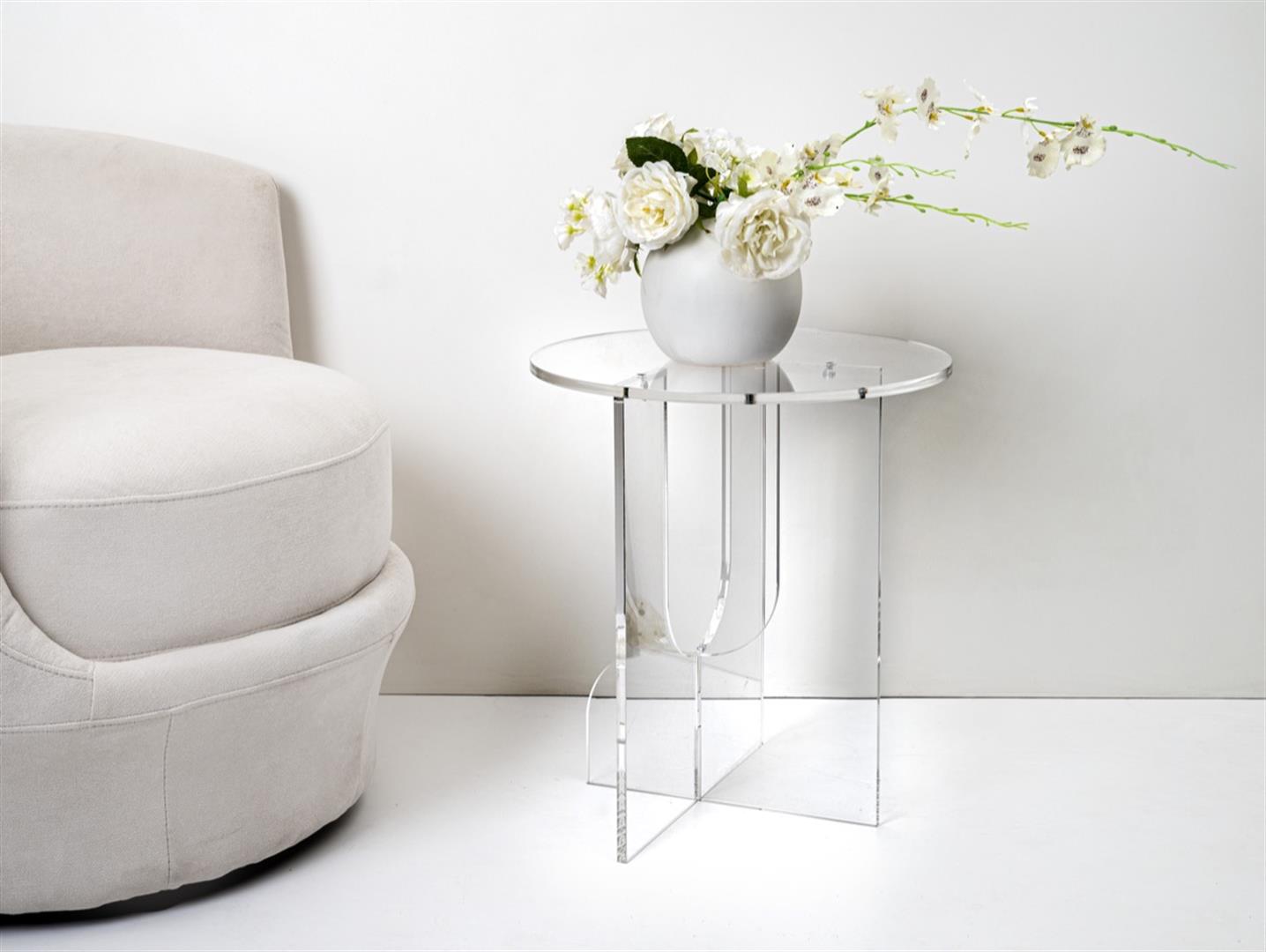 Il tavolino Lu Table è una graziosa e intrigante creazione della collezione Clear by Iplex, presenta delle dimensioni contenute e un ripiano tondeggiante.