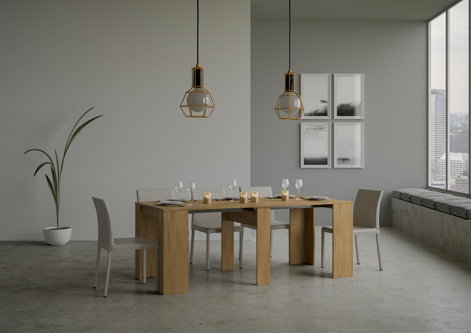 Consolle allungabile Basic 90-204 Quercia Natura, catalogo Itamoby, allunghe esterne alla struttura, ingombro minimo 90x77x48cm, Sku VE090COBAS204-QN, Ean 8050598045480