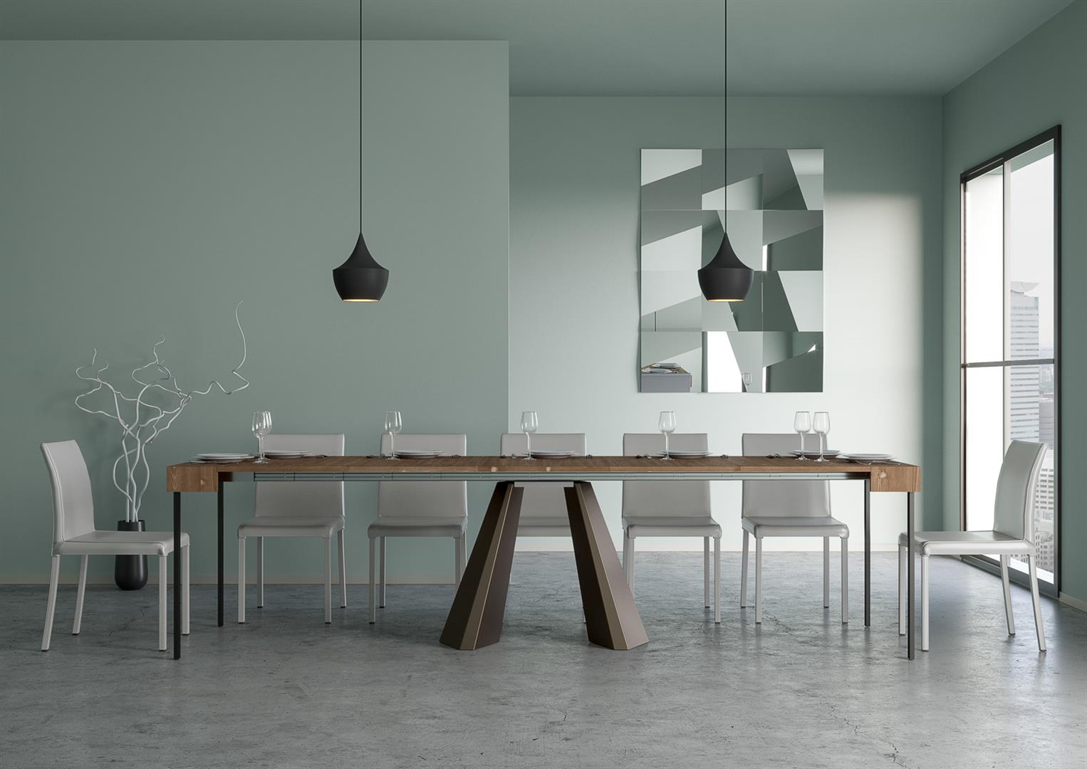 Consolle allungabile, versatile e robusta, un complemento perfetto per ogni ambiente della casa: ingresso, cucina, sala da pranzo, soggiorno o corridoio. La consolle allungabile può essere facilmente trasformata in un ampio tavolo da pranzo lungo fino a 300 cm, in grado di ospitare 14 persone. Realizzata con legno di listellare di abete, gambe in ferro. Il sistema di allunghe con guide telescopiche in alluminio e il sostegno centrale in dotazione rendono la consolle stabile e robusta. Una volta che la consolle è chiusa, le allunghe devono essere riposte altrove.