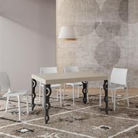 Tavolo allungabile Karamay 80x120 cm, dal design moderno dallo stile ricercato e stravagante, si adatta a qualsiasi stile di arredamento e si rivela la scelta ideale sia come tavolo da pranzo che come elemento d'arredo per il soggiorno, dove poter accogliere i propri ospiti con stile. Il tavolo allungabile Karamay è in grado di estendersi progressivamente fino a 204 cm capace di ospitare 10 persone. Realizzato con pannelli in nobilitato, gambe in ferro, piano con lavorazione a Folding. Il sistema di estensione con guide telescopiche in alluminio rende il tavolo stabile e robusto anche se totalmente allungato, senza bisogno di ulteriori sostegni. Le allunghe sono immediatamente pronte all'utilizzo in quanto alloggiate sotto il piano principale.