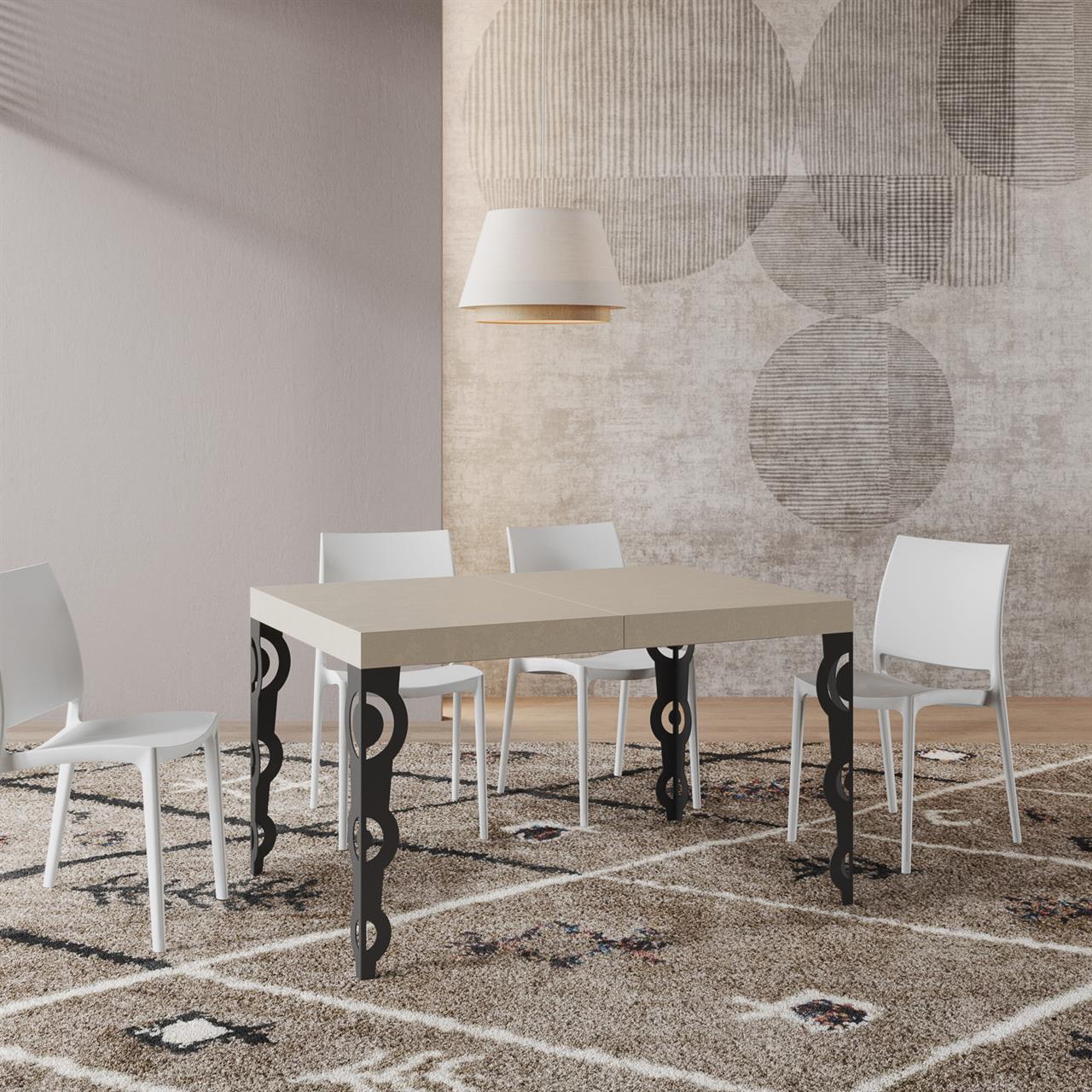 Tavolo da pranzo Karamay 80x120 allungabile fino a 204cm, Cashmere, catalogo Itamoby, allunghe richiudibili all'interno della struttura, ingombro minimo 80x77x120cm, Sku VE812TAKRYALL-CH-AN, Ean 8050598056127