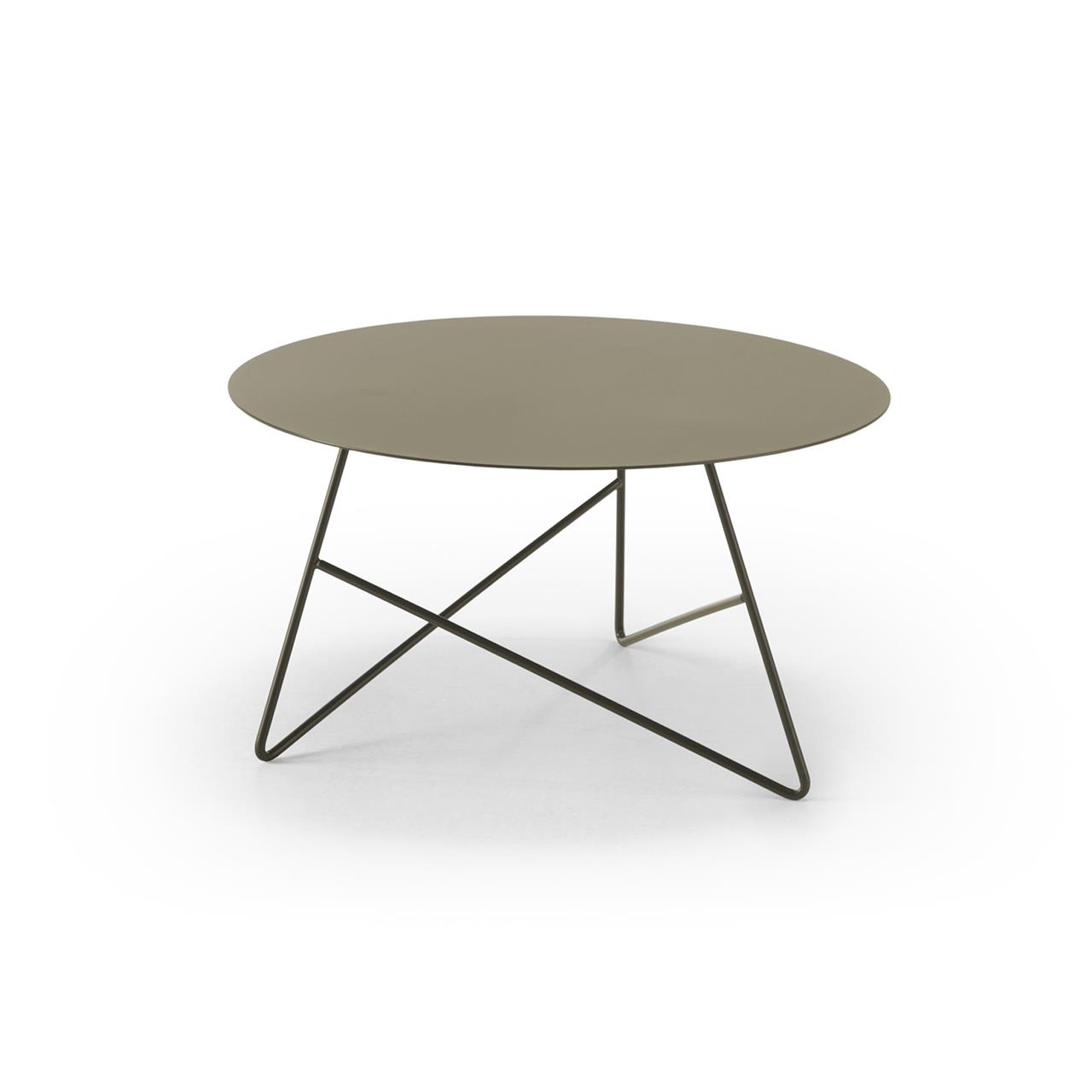 La struttura leggera ma solida, che si rincorre all'infinito circolarmente è la base per il top dalle generose dimensioni. Disponibile con top metallo o vetro nei colori di campionario, dona una eleganza bon ton all'arredo.