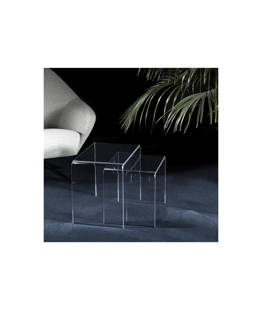 Coppia di tavolini sovrapponibili in plexiglass, modello Simply catalogo Vesta Home, trasparente 23726-00, Futura Design