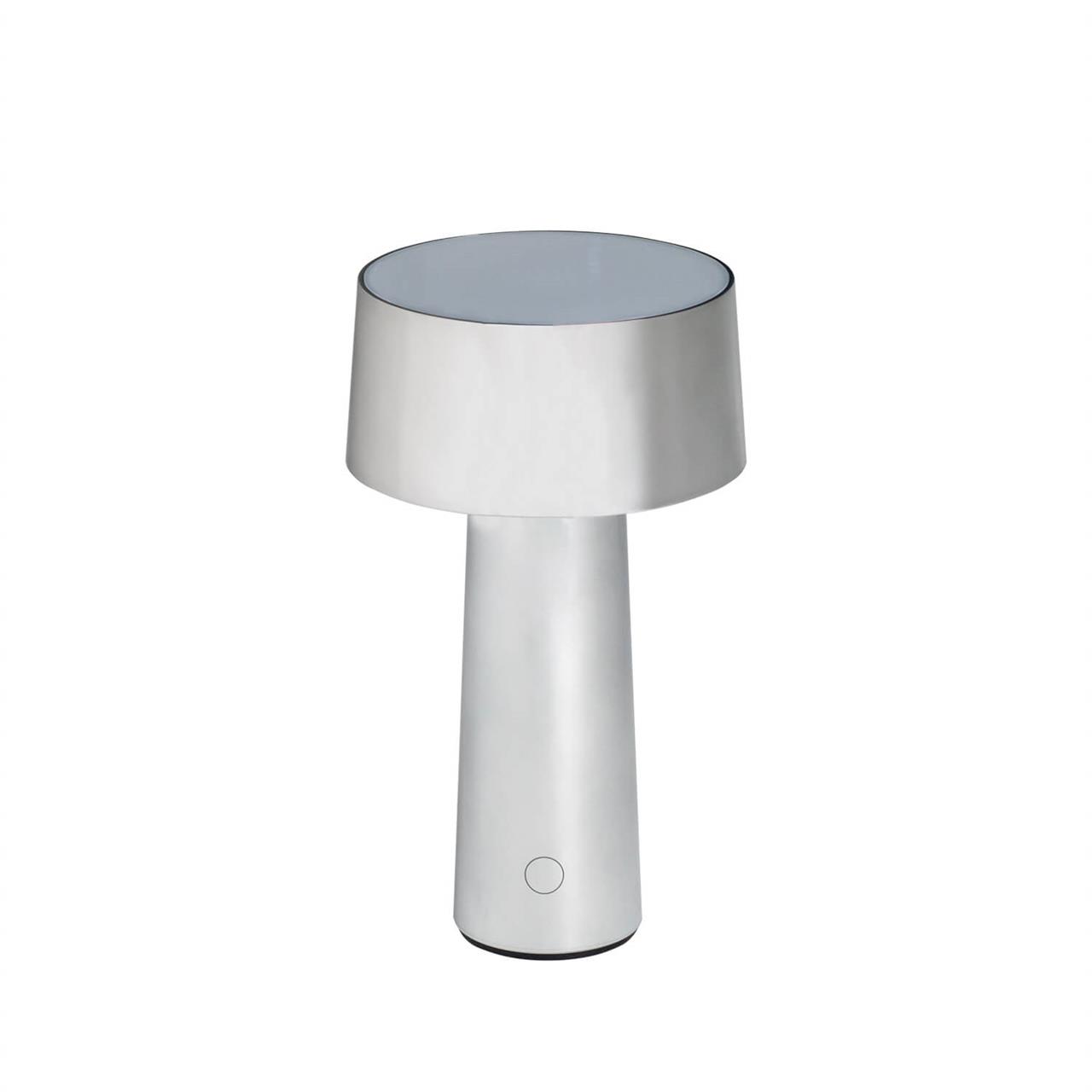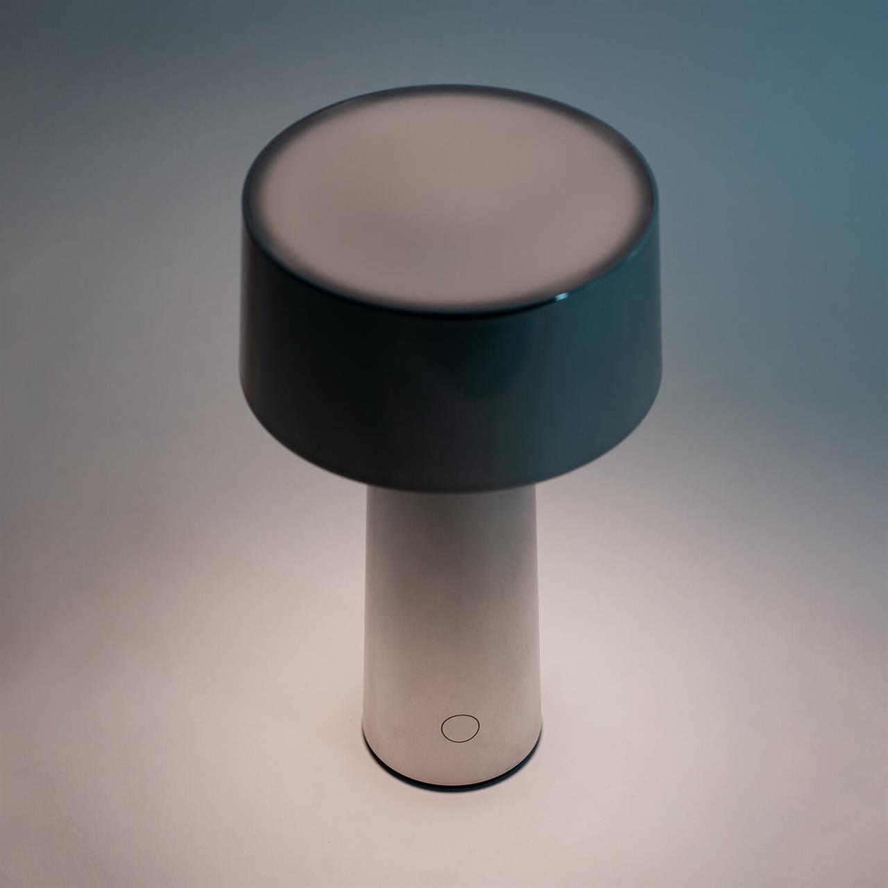 Mush è una lampada da tavolo a batteria, ricaricabile, dal design semplice e minimale con autonomia di 8 ore, diametro 14cm per 26cm di altezza, design Palomba e Serafini.