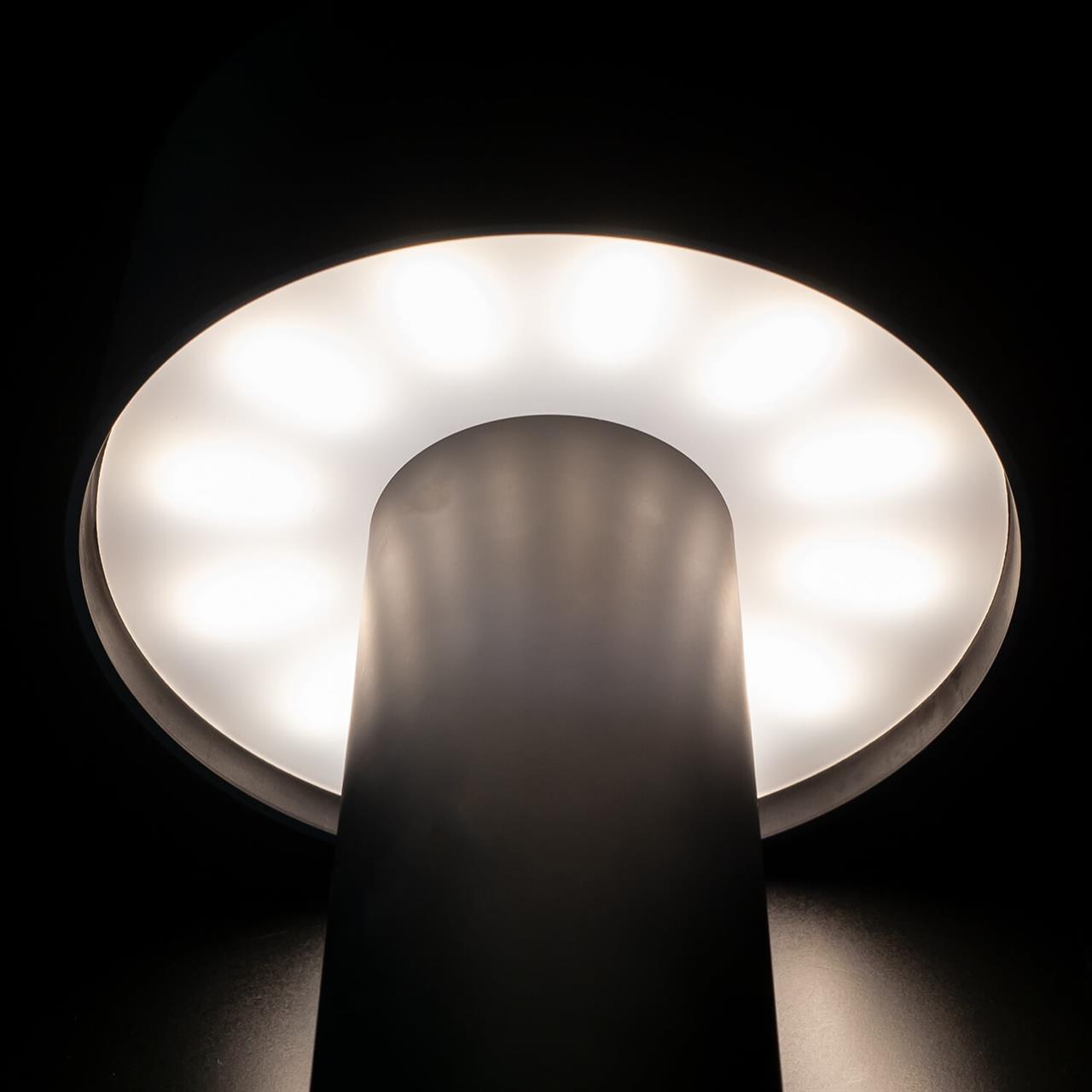 Mush è una lampada da tavolo a batteria, ricaricabile, dal design semplice e minimale con autonomia di 8 ore, diametro 14cm per 26cm di altezza, design Palomba e Serafini.