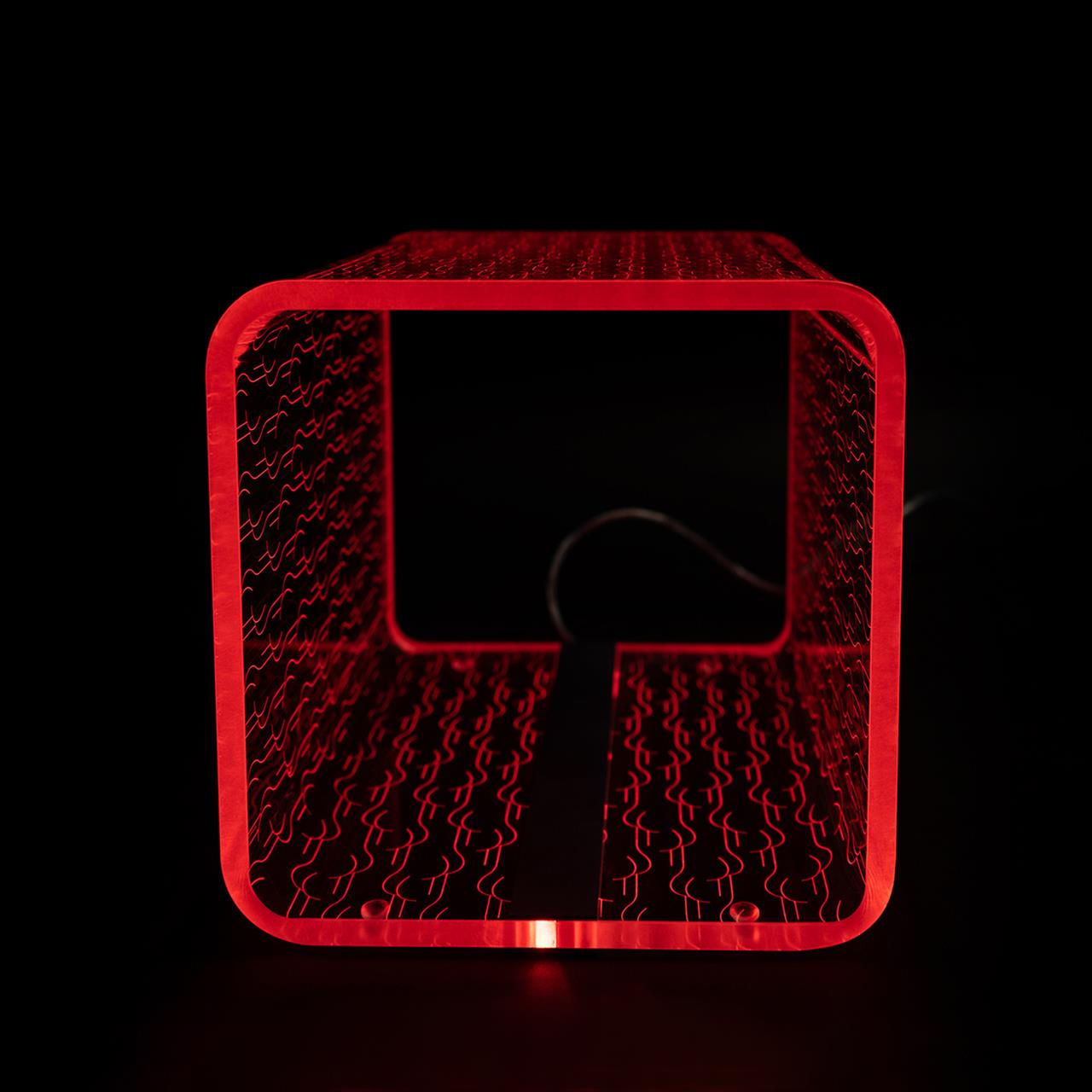 Lampada da tavolo in cristallo acrilico SOLID con varianti colori RGB, fantasia TITS & BUTTS, dimensioni 23x23x23 cm. Marcatura a laser, design Karim Rashid, catalogo Vesta Home, codice 08180-R02
