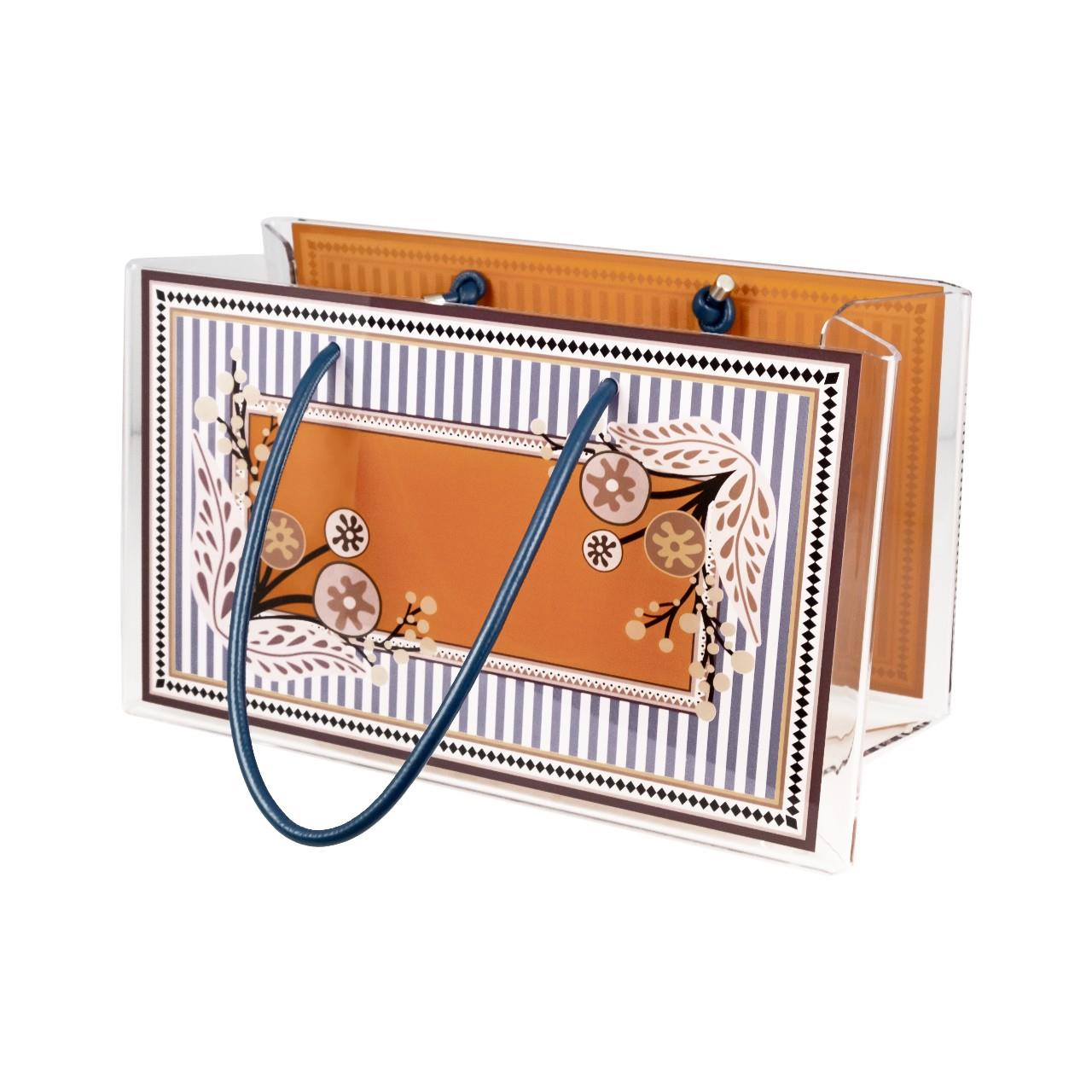 Bucarest Shopper pratico portaoggetti realizzato in cristallo acrilico e decorato con grafica stampata, collezione Vesta Home, fantasia Sveva, codice 04250SVE. Brugiatelli Design e KM Design.