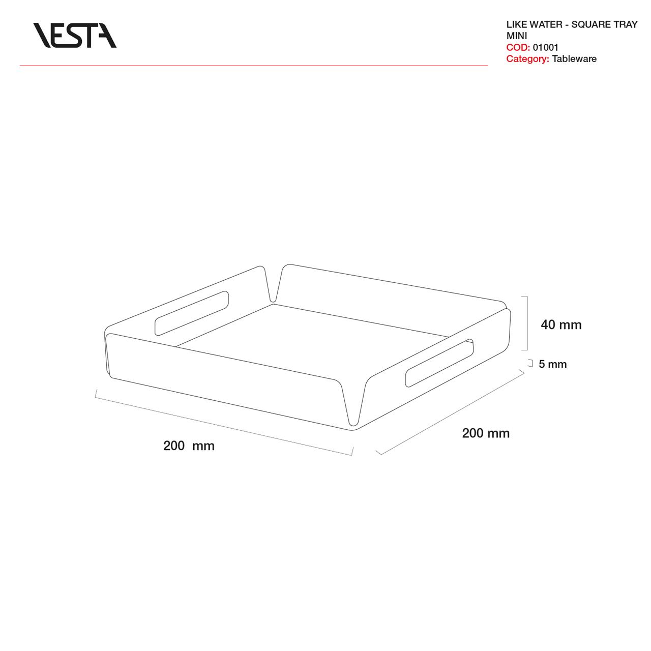 Vassoio quadrato formato mini, dimensioni 20x20 cm, della linea LIKE WATER di Vesta Home, colore trasparente 01001-00, Mattei Carella Design
