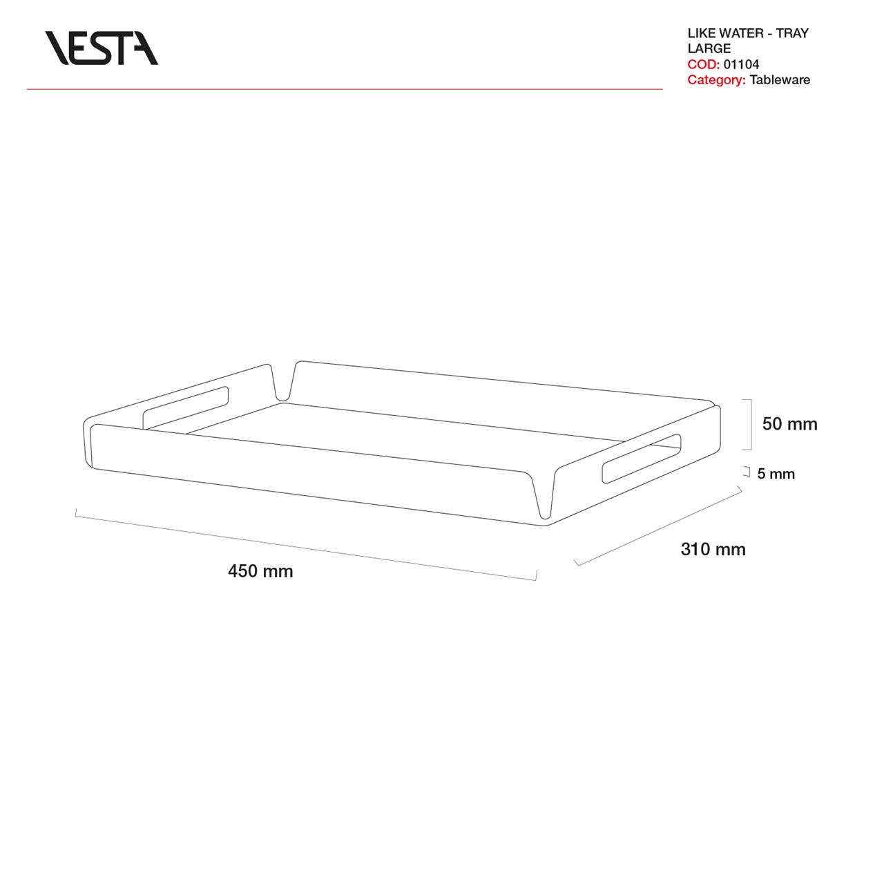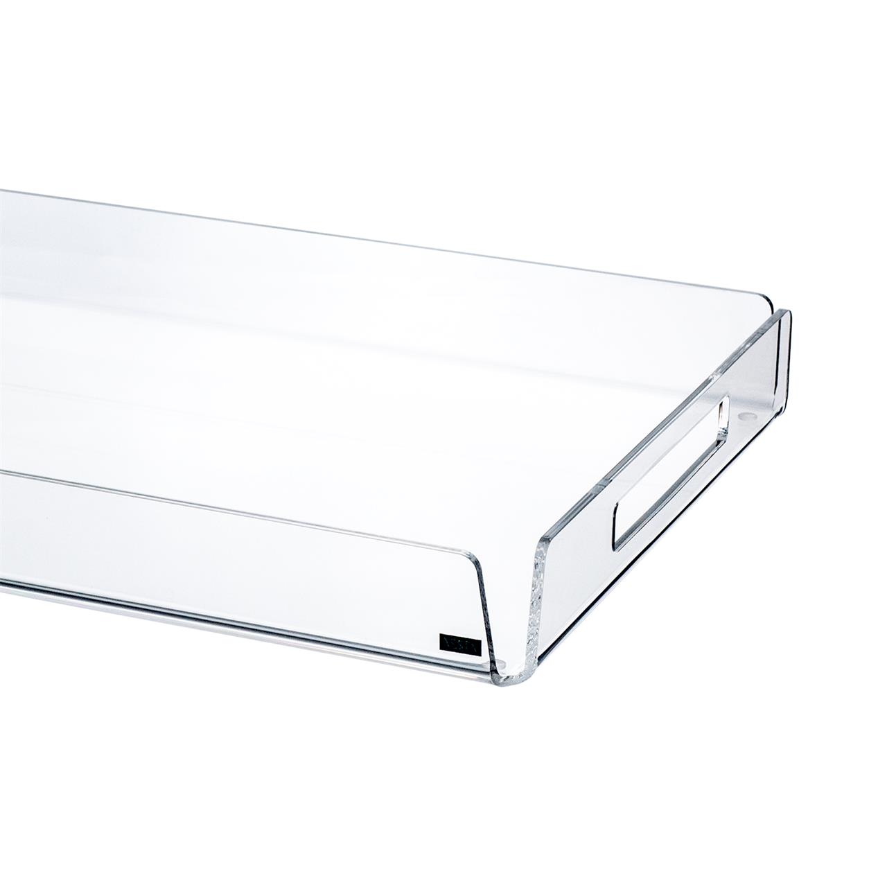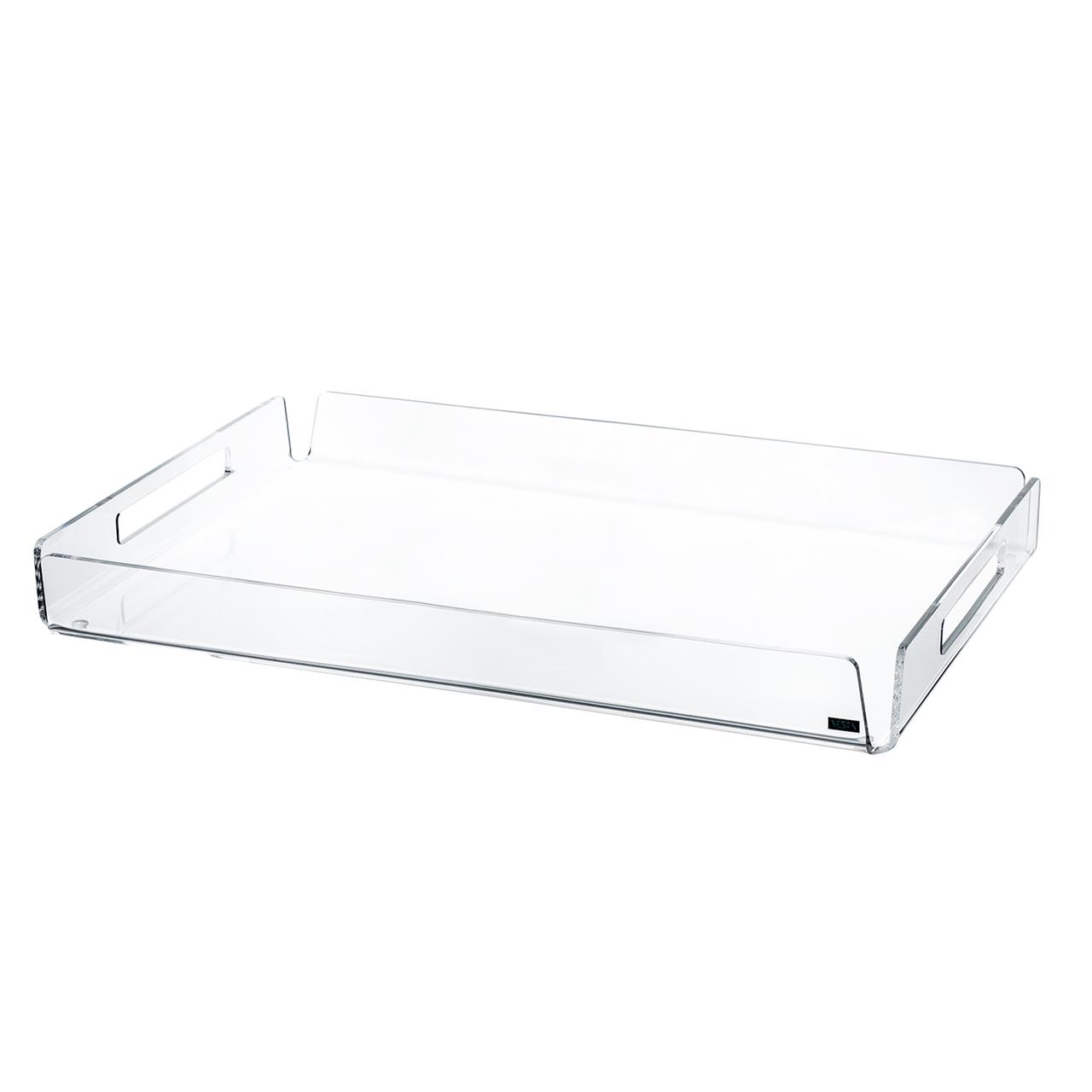 Vassoio rettangolare formato grande, dimensioni 45x31 cm, della linea LIKE WATER di Vesta Home, colore trasparente 01104-00, Mattei Carella Design