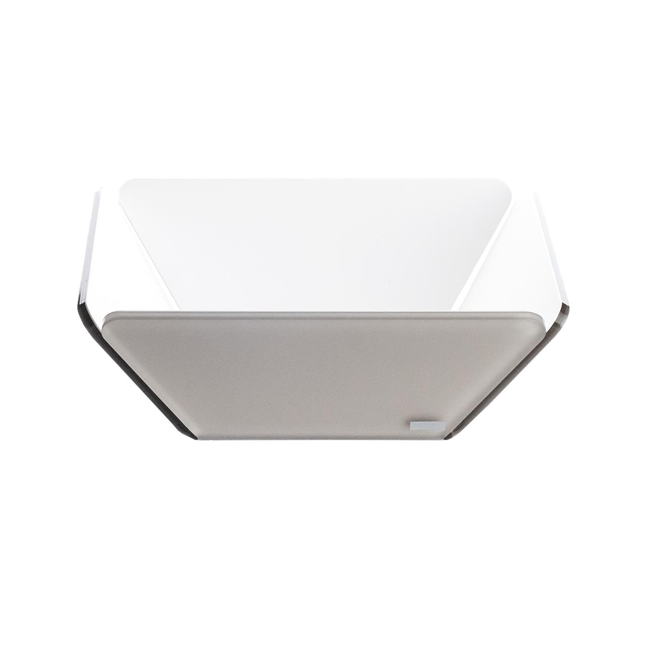 Cristallo acrilico (PMMA). Dimensioni 21x21x7,5 cm, spessore 5mm.