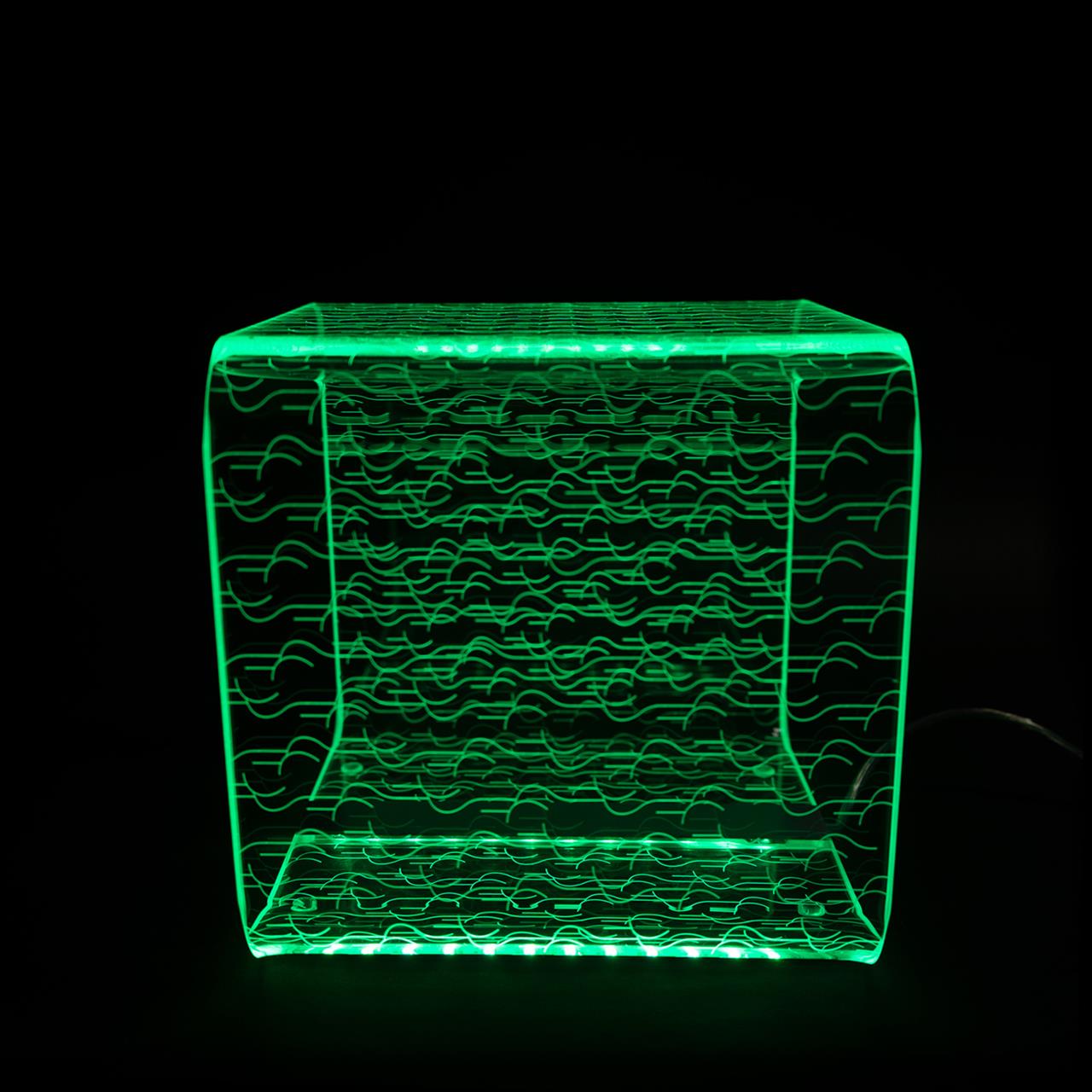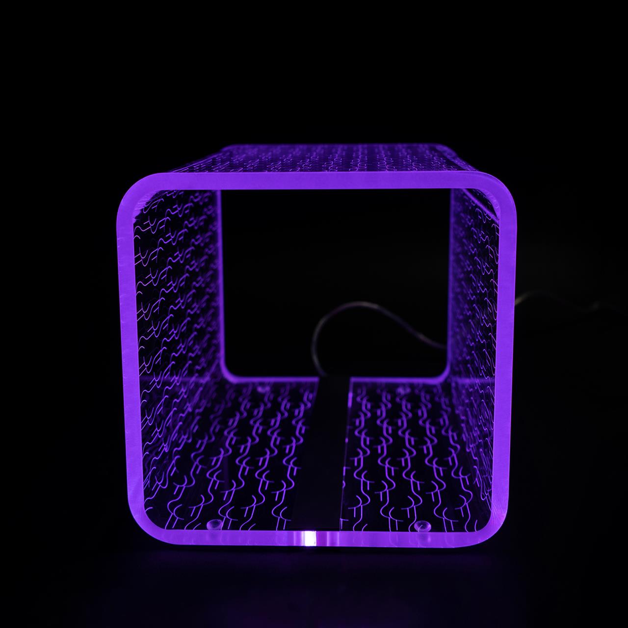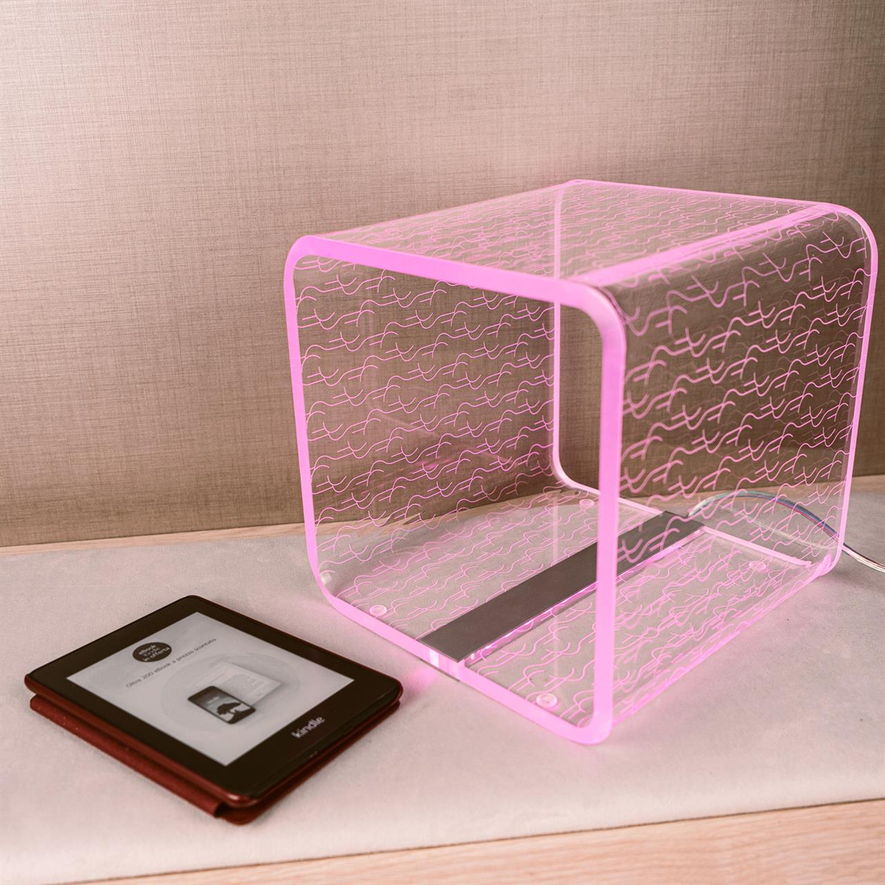 Lampada da tavolo in cristallo acrilico SOLID con varianti colori RGB, fantasia TITS & BUTTS, dimensioni 23x23x23 cm. Marcatura a laser, design Karim Rashid, catalogo Vesta Home, codice 08180-R02