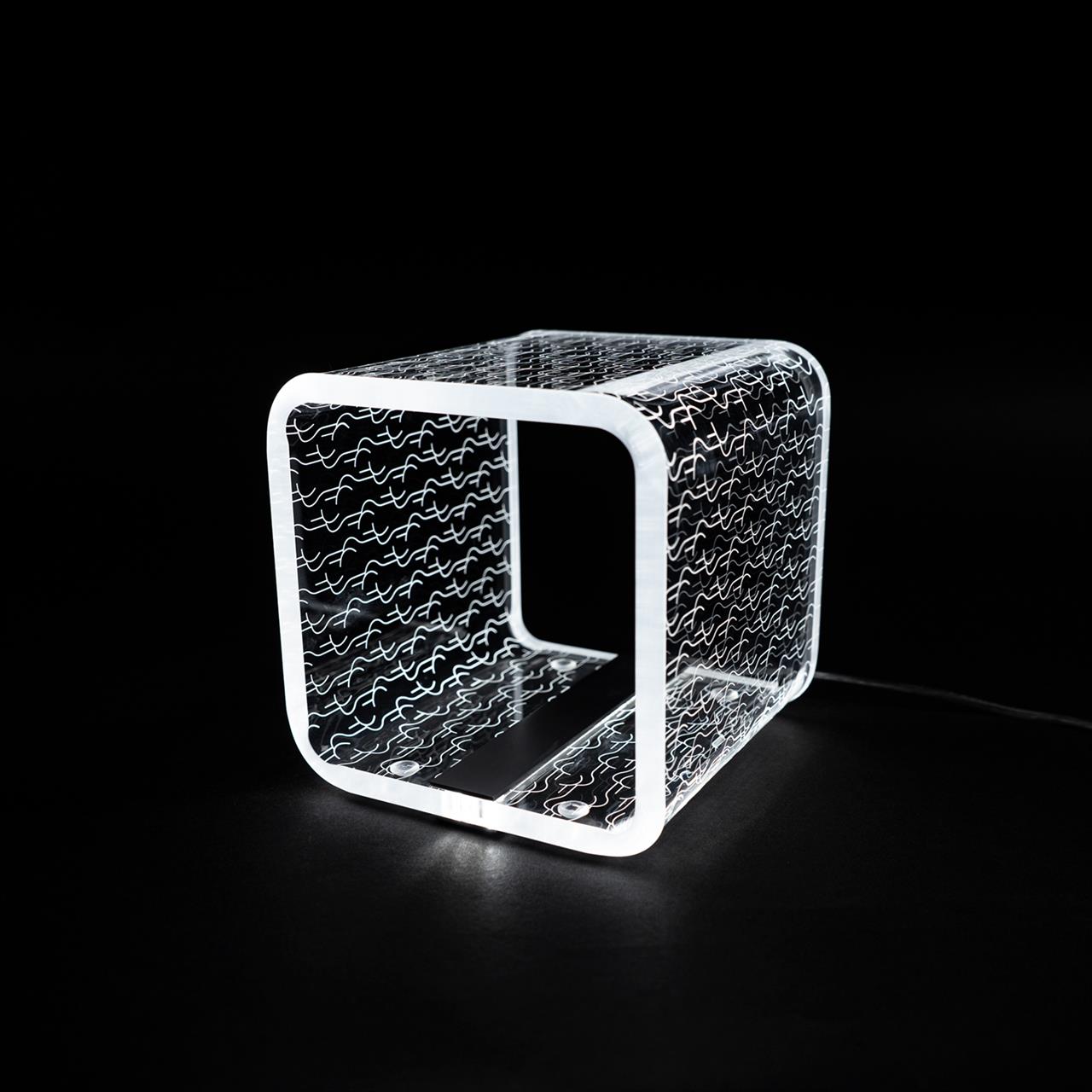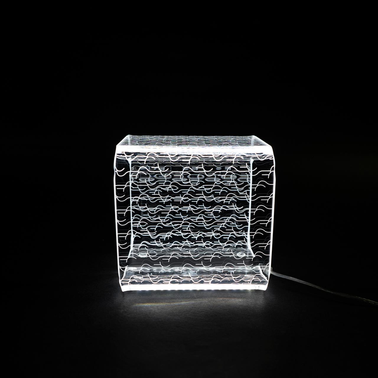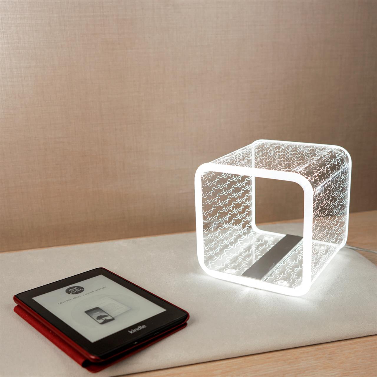 Lampada da tavolo in cristallo acrilico SOLID a luce fredda, fantasia TITS & BUTTS, dimensioni 15x15x15 cm. Marcatura a laser, design Karim Rashid, catalogo Vesta Home, codice 0817902-6K