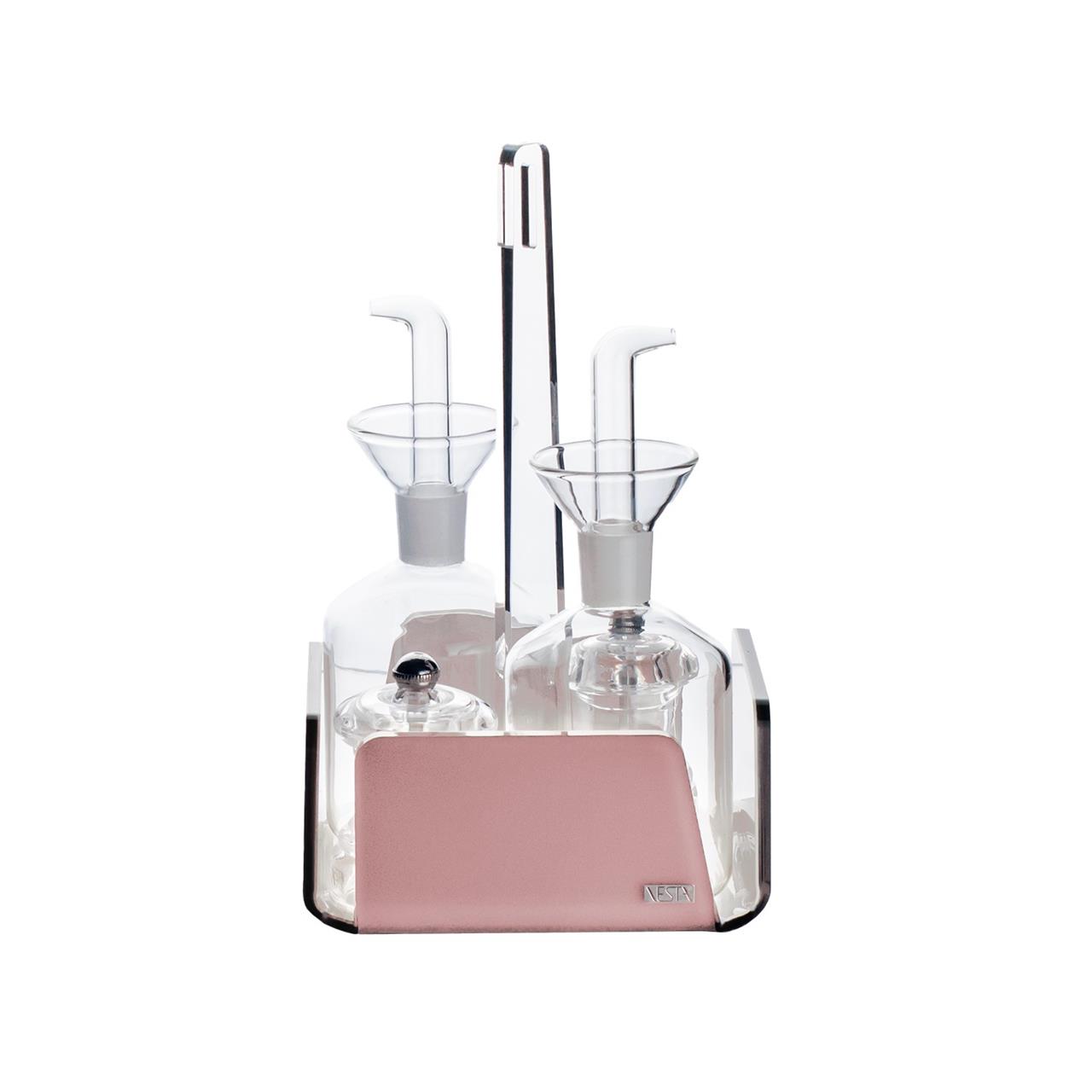 Menage da tavola della linea Like Water di Vesta Home, oliera acetiera sale e pepe, cipria satinato 01404-20S, Mattei Carella Design